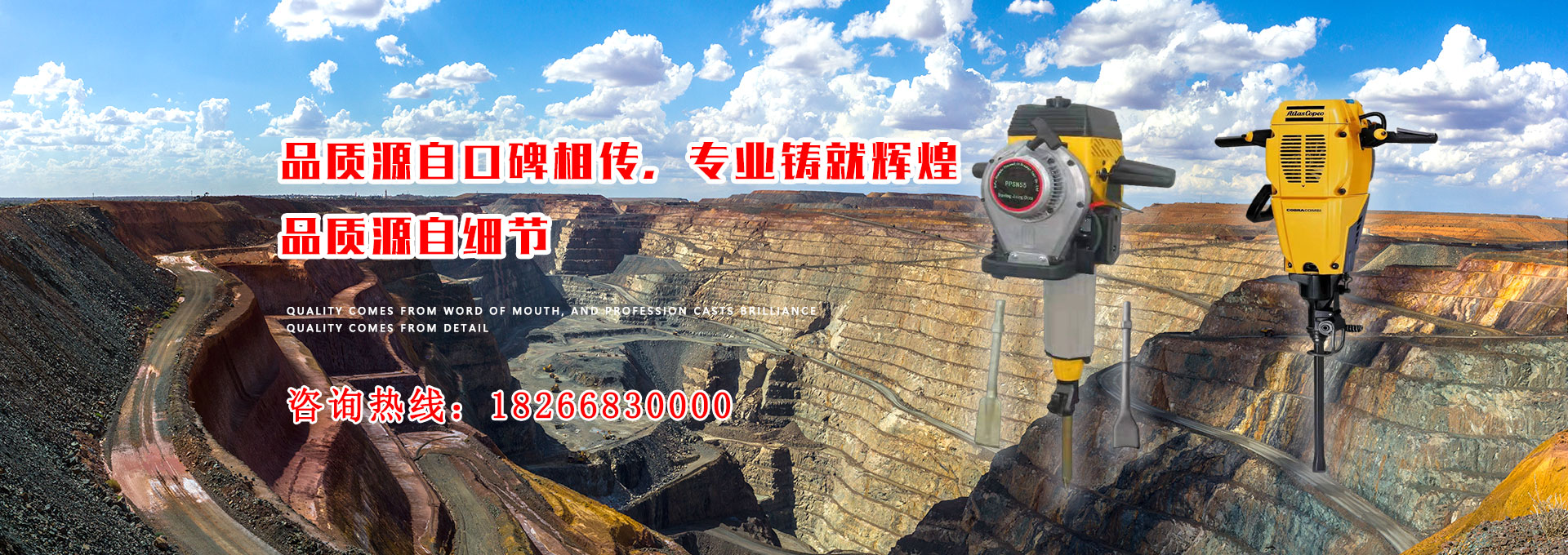 本公司是集開(kāi)發(fā)、制造和銷(xiāo)售于一體的現(xiàn)代化公司,主要生產(chǎn)鑿巖機(jī)和破碎鎬,適用于礦山開(kāi)采和施工作業(yè)